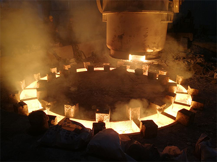 騰飛鑄鋼擁有2個大型鑄造基地,8個造型地坑,可生產單件重量150噸鑄鋼件,采用水玻璃砂造型工藝,目前擁有25噸、30噸、50噸煉鋼電爐4臺、120噸精煉爐1臺;150噸大型拋丸機1臺,4臺大型天燃氣熱處理爐,30臺起重設備,起吊200噸。精良的設備,為優質的鑄鋼件的生產提供了保障。