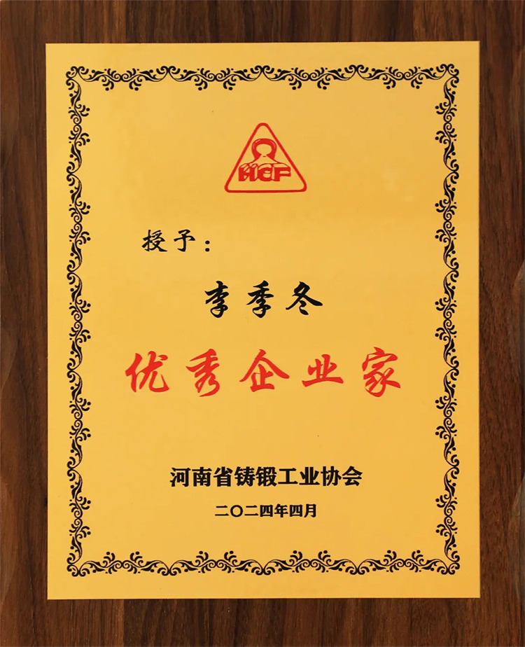 ? ? ?在2024年河南省鑄鍛工業年會上,公司被評為“河南省鑄鍛行業綠色鑄造示范企業”榮譽稱號,并被授予“鑄鍛行業優-秀企業”。李總被授予“優-秀企業家”稱號。