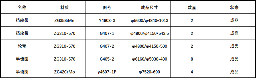 騰飛鑄鋼現有直徑4.6*110m回轉窯和直徑4*40m干燥窯配套的擋輪帶,成品4件
