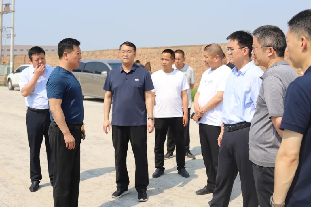 仲夏時節,烈日炎炎。時值端午,粽葉飄香。6月22日下午3點,氣溫高達37度,輝縣市委副書記、代市 長郭奇冒著酷暑,帶領市 政 府辦公室、發改委、工信局、孟莊鎮政 府等各部門主要負責人,到公司新建項目-河南新騰飛鑄鋼、年產8萬噸鑄鋼新建項目進行調研,張總熱情接待了調研組一行。